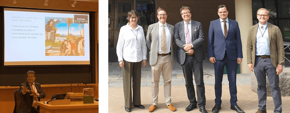 Above left, Prof. Stephan Wendehorst speaking on Jewish law as a source of law in Europe’s precodification mixed jurisdictions. Above right (left to right), Dr. Paula Somogyi, who spoke on paleography and their legal history clinic, and their use of overlooked archives, along with her colleagues Drs. Ulrich Hausmann, Wendehorst, Kevin Hecken, and Mr. Georg Donabauer, who spoke on their rich research and teaching cluster at the University of Vienna. Their “A Legal Pluriverse of Multiple Canons and Authorities” session was a highlight of the conference.